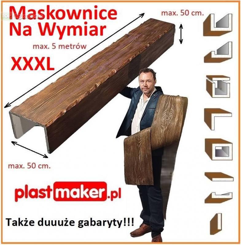 Maskownice drewnopodobne styropianowe na wymiar PLASTMAKER to doskonały sposób na dekoracyjne maskowanie wszelkich pęknięć sufitów, belek, podciągów, jętek, instalacji wodnych, wentylacyjnych i kanalizacyjnych.