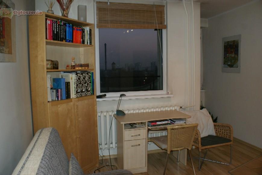 Mieszkanie urządzone w nowoczesny i funkcjonalny sposób. Kuchnia oddzielna, z oknem, w pełni wyposażona, na podłodze płytki. Pokój umeblowany: biurko, szafa, regał, komoda, wersalka, stolik i fotele. Na podłodze panele. W przedpokoju szafki w zabudowie. Łazienka z toaletą wyłożona płytkami z kabiną prysznicową, umywalką i pralką. Okna na stronę wschodnią, duży, wypłytkowany balkon.