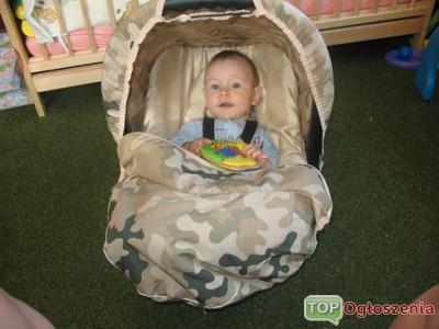 witam! Sprzedam fotelik samochodowy (nosidełko do 10kg) mało używany, jeszcze na gwarancji. jasnobeżowy z dodatkami pustynne moro. fotelik posiada budkę w kolorze beżowym oraz ochraniacz na nóżki beżowy i moro, gratis dodaję budkę i ochraniacz na nóżki całe w moro
