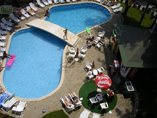 Opis: dogodnie usytuowany w samym centrum kurortu, skromnie urządzony. Dysponuje basenem kąpielowym, barem przy basenie, restauracją, barem, recepcją z możliwością wynajęcia sejfu (odpłatnie) oraz parkingiem.