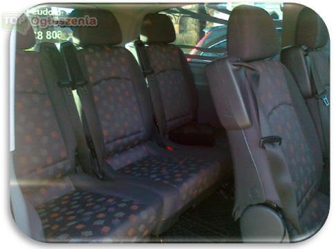 W wyposażeniu: wygodne, dzielone- uchylane fotele, indywidualne oświetlenie, ABS, ASR, Autoalarm, Centralny zamek, Czujnik parkowania, Elektryczne lusterka, Elektryczne szyby, ESP, Hak, Immobiliser, Klimatyzacja, Komputer, Kontrola trakcji, Poduszki powietrzne x 2,Podłokietniki, Radio z CD, Radio z MP3, Wspomaganie kierownicy. Auto bezpieczne i ekskluzywne, idealne na prywatny przewóz określonej grupy. Zapewniamy dyskrecję oraz wysoką kulturę osobistą kierowcy.
